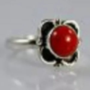 Coral Silver Ring, 925 Sterling Silver, Handmade Ring, Red Coral Gemstone, Round Shape Coral Ring