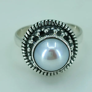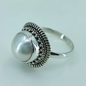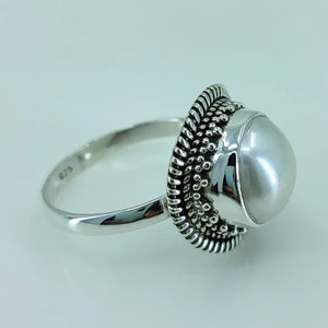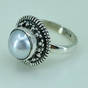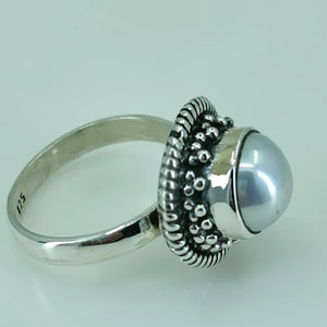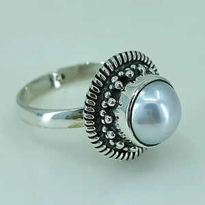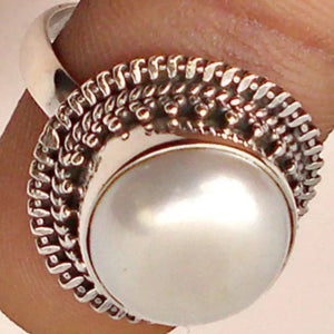 Freshwater Coin Pearl 925 Sterling Silver Handmade Statement Ring- Round Coin Pearl Boho June Birthstone Jewelry - Perfect Gift for Her Birthday Anniversary Christmas Valentine Day