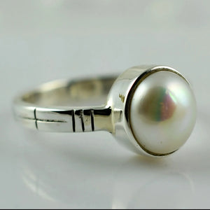 925 Solid Sterling Silver Handmade Designer Ring Studded with Genuine Freshwater Pearl Custom Size 4 to 13