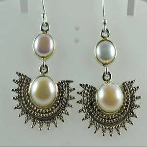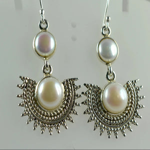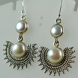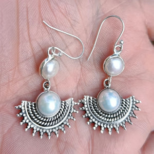 Freshwater White Pearl 925 Sterling Silver Handmade Earrings - Boho June Birthstone Jewelry - Perfect Gift for Her Birthday Anniversary Christmas Valentine Day