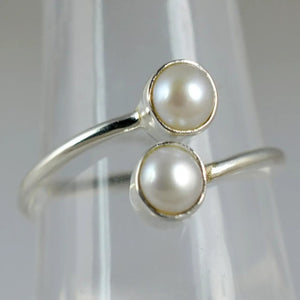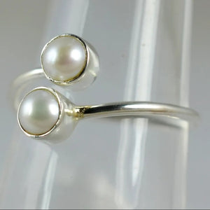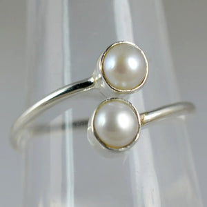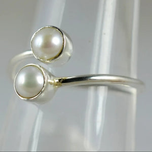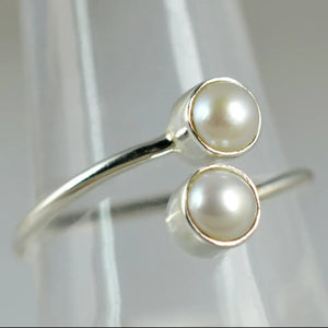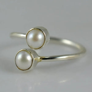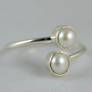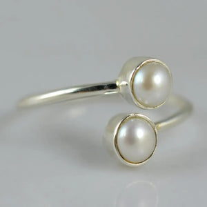 Pearl Ring, 925 Sterling Silver Handmade Promise Ring, Dual Pearl Adjustable Ring, June Birthstone Jewelry, Gift for Her Anniversary