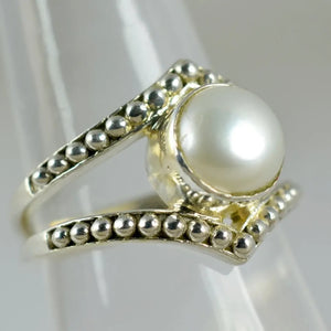 Navya Craft Freshwater Pearl 925 Sterling Silver Handmade Women Statement Ring boho June Birthstone Jewelry Sizes 4 to 13 Christmas Anniversary Birthday Valentine Day Gift wife her mother