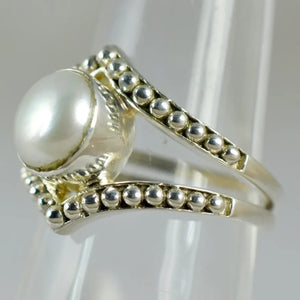 Home Navya Craft Freshwater Pearl 925 Sterling Silver Handmade Women Statement Ring boho June Birthstone Jewelry Sizes 4 to 13 Christmas Anniversary Birthday Valentine Day Gift wife her mother
