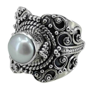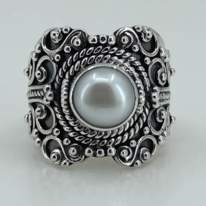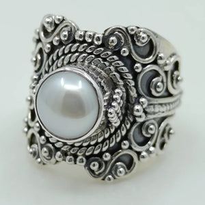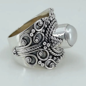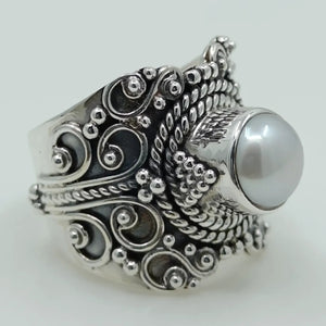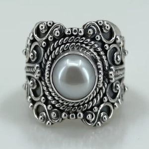 Freshwater Pearl 925 Sterling Silver Handmade Ring - Boho June Birthstone Jewelry - Perfect Gift for Her Birthday Anniversary Christmas Valentine Day