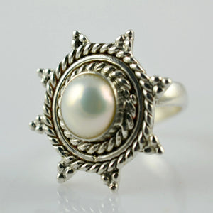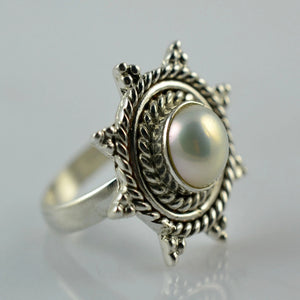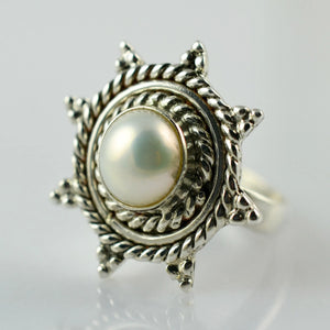 Freshwater Pearl 925 Sterling Silver Handmade Ring - Boho June Birthstone Jewelry - Perfect Gift for Her Birthday Anniversary Christmas Valentine Day