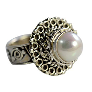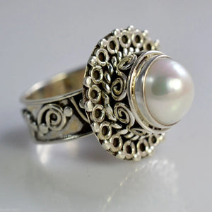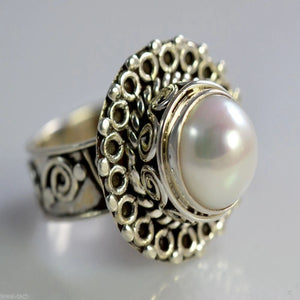 Freshwater Pearl 925 Sterling Silver Handmade Ring - Boho June Birthstone Jewelry - Perfect Gift for Her Birthday Anniversary Christmas Valentine Day