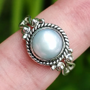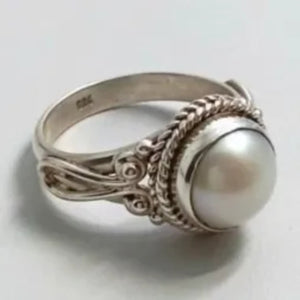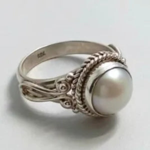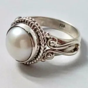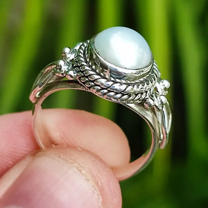 Freshwater Pearl 925 Sterling Silver Handmade Ring - Boho June Birthstone Jewelry - Perfect Gift for Her Birthday Anniversary Christmas Valentine Day