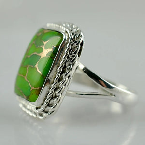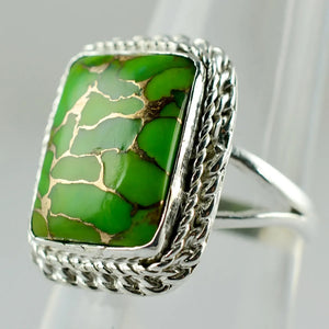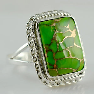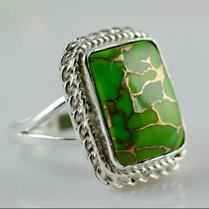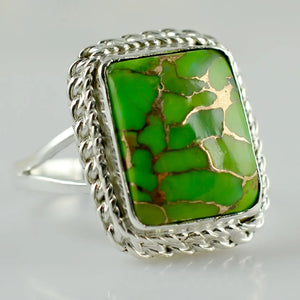 Green Copper Turquoise Cushion 925 Sterling Silver Handmade Ring - Boho December Birthstone Jewelry - Perfect Gift for Her Birthday Anniversary Christmas Valentine Day