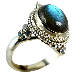 Natural Labradorite Oval 925 Solid Sterling Silver Ring