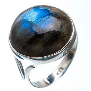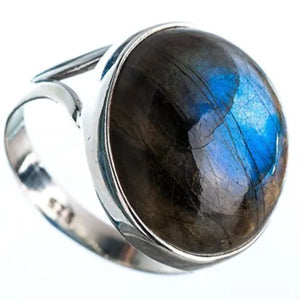 Home Labradorite Round Shape 925 Sterling Silver Handmade Ring - Boho November Birthstone Jewelry - Perfect Gift for Her Birthday Anniversary Christmas Valentine Day