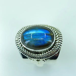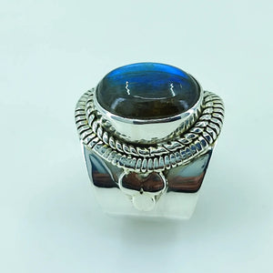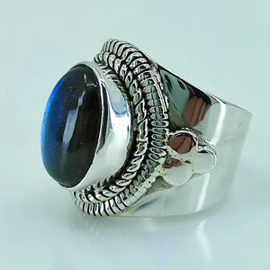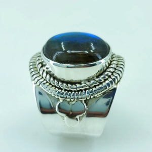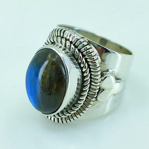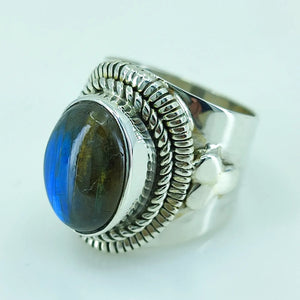 Natural Blue Fire Labradorite 925 Solid Sterling Silver Ring