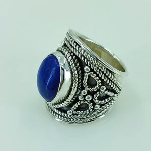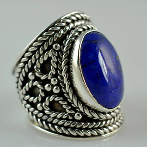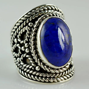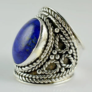 Lapis Lazuli 925 Sterling Silver Handmade Statement Ring - Natural Blue Oval shape Gemstone Boho September Birthstone Jewelry - Perfect Gift for Her Birthday Anniversary Christmas Valentine Day
