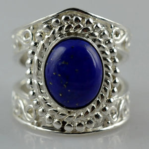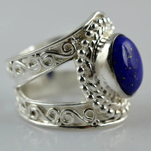 Lapis Lazuli 925 Sterling Silver Handmade Ring - Natural Blue Oval Gemstone Boho September Birthstone Jewelry - Perfect Gift for Her Birthday Anniversary Christmas Valentine Day