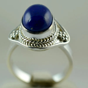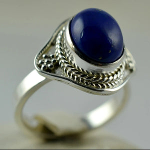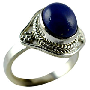Lapis Lazuli 925 Sterling Silver Handmade Ring - Natural Blue Oval Gemstone Boho September Birthstone Jewelry - Perfect Gift for Her Birthday Anniversary Christmas Valentine Day