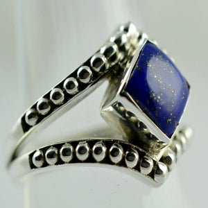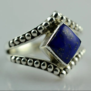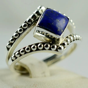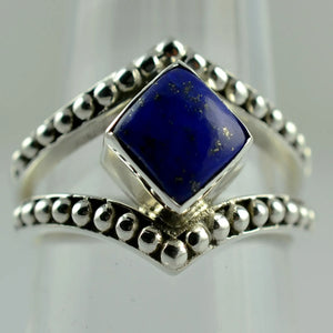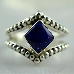 Lapis Lazuli 925 Sterling Silver Handmade Ring - Natural Blue Cushion Shape Gemstone Boho September Birthstone Jewelry - Perfect Gift for Her Birthday Anniversary Christmas Valentine Day