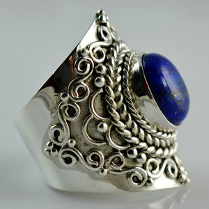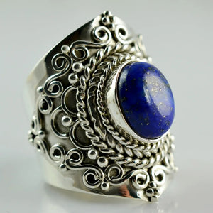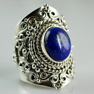 Lapis Lazuli 925 Sterling Silver Handmade Ring - Natural Blue oval Shape Gemstone Boho September Birthstone Jewelry - Perfect Gift for Her Birthday Anniversary Christmas Valentine Day