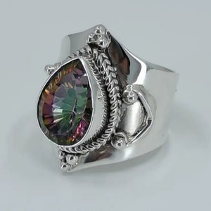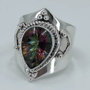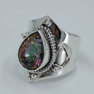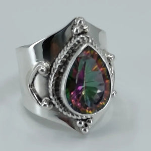 Mystic Topaz 925 Solid Sterling Silver Handmade Statement Women Ring Custom Size 4 to 13 (US)