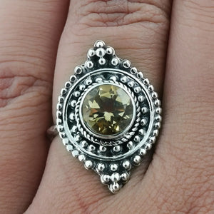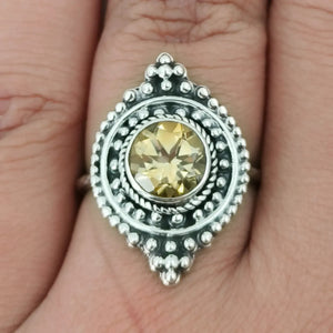 Navya Craft Natural Citrine Round 925 Sterling Silver handmade Ring Citrine Jewelry November Birthstone Size 4 to 14 Christmas Anniversary Birthday Valentine Day Gift wife her
