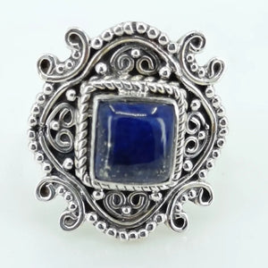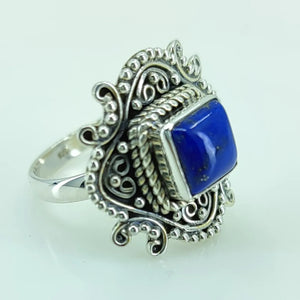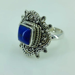 Lapis Lazuli 925 Sterling Silver Handmade Statement Ring- Natural Blue Cushion Shape Gemstone Boho September Birthstone Jewelry - Perfect Gift for Her Birthday Anniversary Christmas Valentine Day
