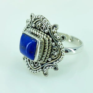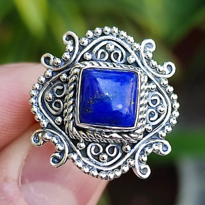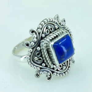 This gorgeous and timeless handmade ring is made from 925 sterling silver and genuine Lapis Lazuli.