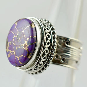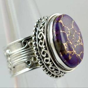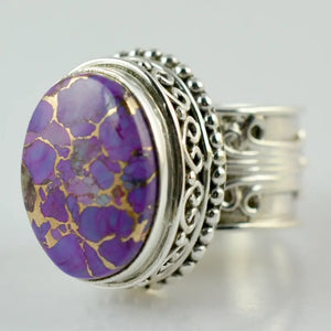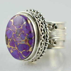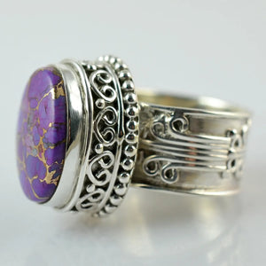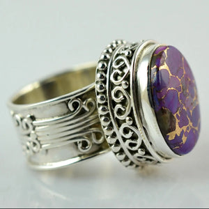 Purple Copper Turquoise Oval 925 Sterling Silver Handmade Women Statement Ring