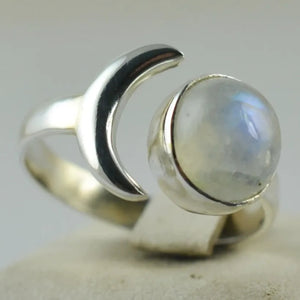 Rainbow Moonstone 925 Sterling Silver Handmade Statement Ring- Rainbow Moonstone Boho June Birthstone Jewelry - Perfect Gift for Her Birthday Anniversary Christmas Valentine Day