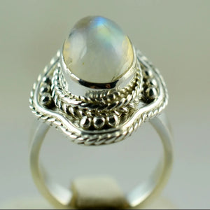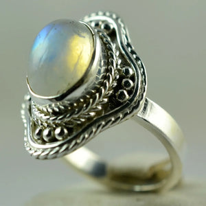Rainbow Moonstone 925 Sterling Silver Handmade Statement Ring- Boho June Birthstone Jewelry - Perfect Gift for Her Birthday Anniversary Christmas Valentine Day