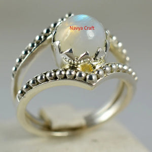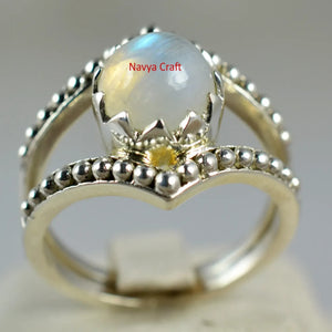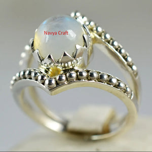 Rainbow Moonstone 925 Sterling Silver Handmade Statement Ring- Boho June Birthstone Jewelry - Perfect Gift for Her Birthday Anniversary Christmas Valentine Day