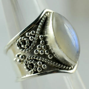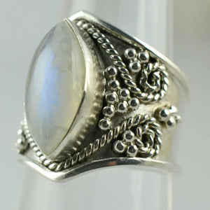 Rainbow Moonstone 925 Sterling Silver Handmade Statement Ring - Boho June Birthstone Jewelry - Perfect Gift for Her Birthday Anniversary Christmas Valentine Day