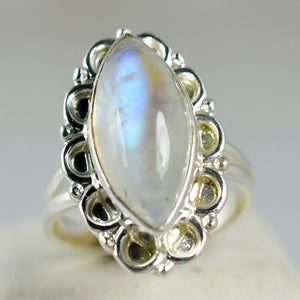 Natural Fire Rainbow Moonstone marquise 92.5 Solid Sterling Silver Ring