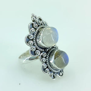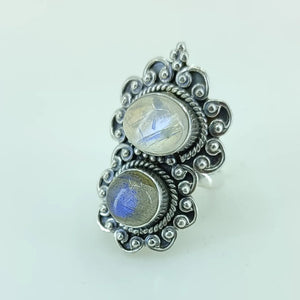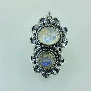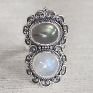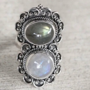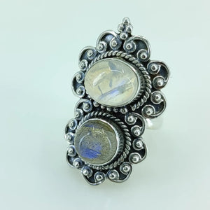 Rainbow Moonstone and Labradorite 925 Sterling Silver Handmade Ring - Boho June Birthstone Jewelry - Perfect Gift for Her Birthday Anniversary Christmas Valentine Day