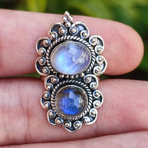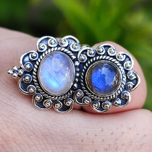 Gemstone Used: Genuine Rainbow Moonstone and Blue Fire Labradorite