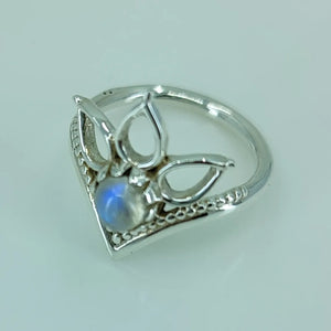 Natural Fire Rainbow Moonstone 92.5 Solid Sterling Silver Ring