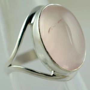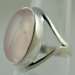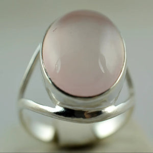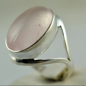Rose Quartz Oval 925 Sterling Silver Handmade Ring - Boho January Birthstone Jewelry - Perfect Gift for Her Birthday Anniversary Christmas Valentine Day
