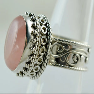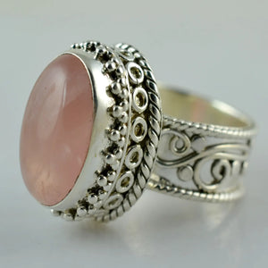 Natural Rose Quartz 92.5 Solid Sterling Silver Handmade Ring Custom Size 4 to 13 Metal: 925 Solid Sterling SilverStone Used: Rose Quartz Stone Shape: Oval Cab Stone Size: 12 X 16 mm Stone Color: Pink.All Custom Ring Sizes are available between 4 to 13. Kindly measure your exact US Ring Size before ordering. Kindly mention your Exact Ring size in the Order. Authentic Pure 925 Solid Sterling Silver. Proudly 925 Stamped. High-quality finished product. Our all Sterling Silver Jewelry items are entirely handmade with highest quality cut & polished gemstones.