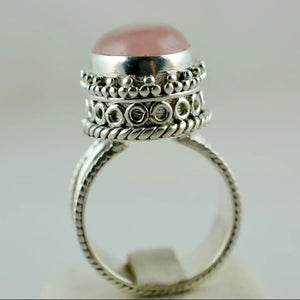 Rose Quartz Oval 925 Sterling Silver Handmade Ring - Boho January Birthstone Jewelry - Perfect Gift for Her Birthday Anniversary Christmas Valentine Day