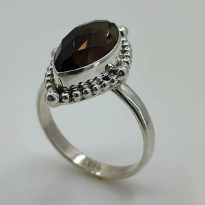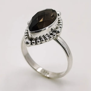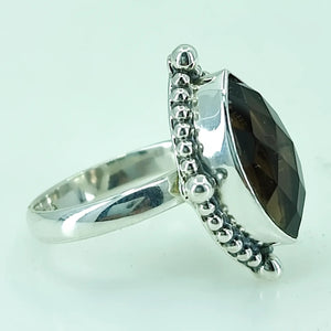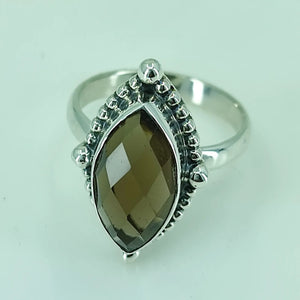 Smoky Quartz Marquise Shape 925 Sterling Silver Handmade Ring - Boho November Birthstone Jewelry - Perfect Gift for Her Birthday Anniversary Christmas Valentine Day