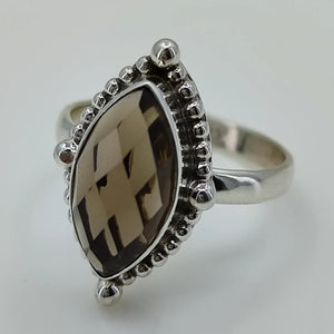 Natural Smoky Quartz Checker Cut Marquise 925 Solid Sterling Silver Handmade Designer Ring Custom Size 4 to 13