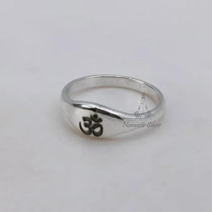 Om Ring, 925 Sterling Silver Aum Symbol Band, Handmade Yoga Meditation Promise Custom Engraved Yoga Jewelry, Spiritual Gift for Him & Her