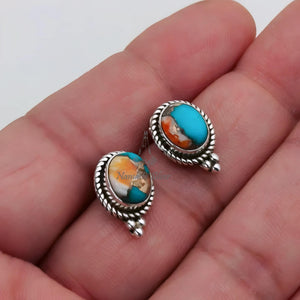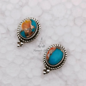 Discover the perfect fusion of nature's beauty and artisan skill with our exquisite turquoise stud posts, crafted from genuine oyster copper stone. These handmade turquoise earrings are set in top-quality 925 sterling silver, ensuring comfort and durability for all-day wear.