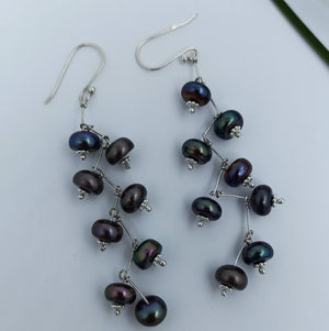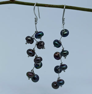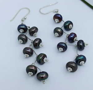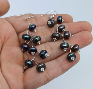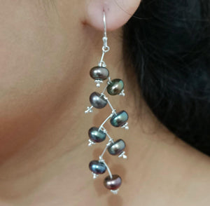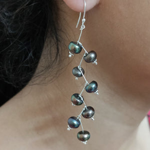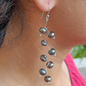 Pearl Earrings, 925 Sterling Silver Dangle Earrings, Freshwater Peacock Black Pearl Handmade Boho Jewelry, June Birthstone Gift for Her