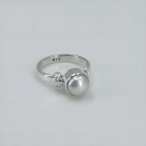 Discover timeless elegance with our handcrafted pearl silver ring, delicately crafted from 925 sterling silver. This exquisite piece features a lustrous white freshwater pearl, offering a touch of sophistication and organic beauty to your collection.