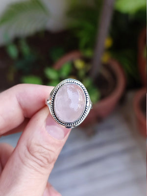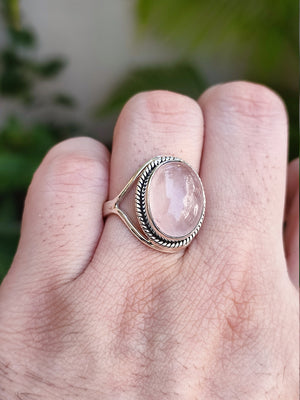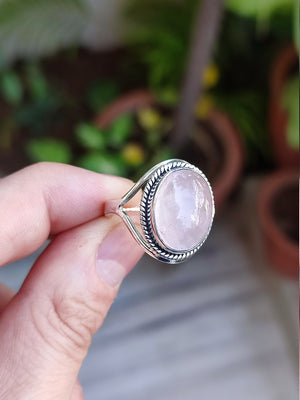 Rose Quartz Oval 925 Sterling Silver Handmade Women Cocktail Ring,  Rose Quartz Silver Ring,  Pink Gemstone Ring, Gift for her, Boho Ring