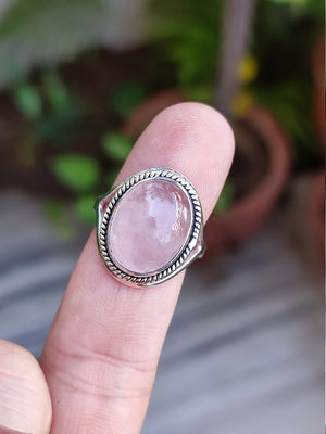 Natural Rose Quartz Oval 925 Solid Sterling Silver Handmade Statement Ring for Girls / Women.