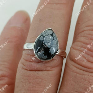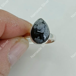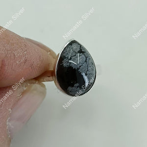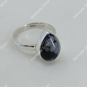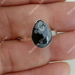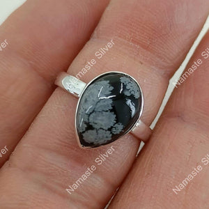 Snowflake Obsidian Ring, 925 Sterling Silver Promise Ring, Natural Black Gemstone Handmade Boho Jewelry, Gift For Her Birthday Anniversary