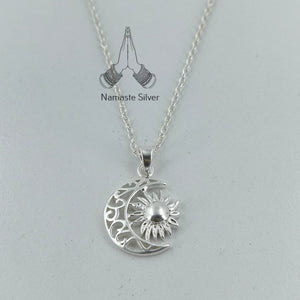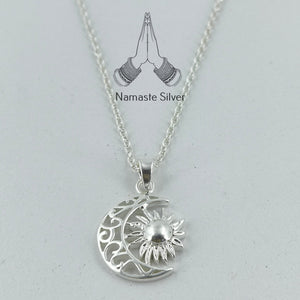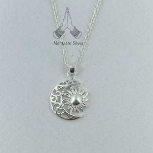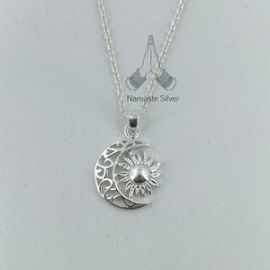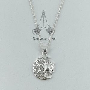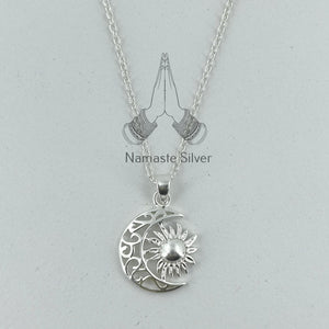 Sun Moon Necklace, 925 Sterling Silver Pendant Chain, Celestial Jewelry, Sun Moon Locket, Boho Gift for her Birthday Anniversary