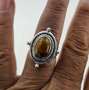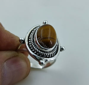 Tiger Eye 925 Sterling Silver Handmade Ring, Tiger Eye Silver Ring, Natural Tiger Eye Oval Ring, Boho Ring