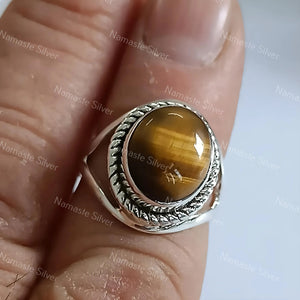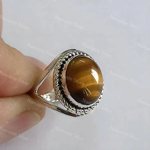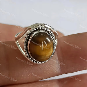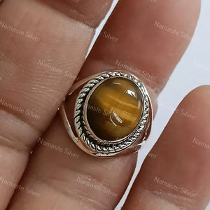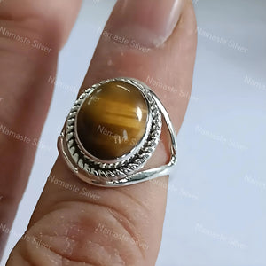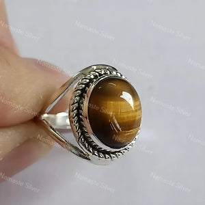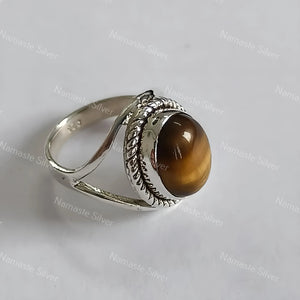 Tigers Eye Oval Silver Ring, Tigers Eye 925 Sterling Silver Handmade Statement Women Ring, Natural Tigers Eye Ring, Boho Ring, Gift for her