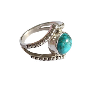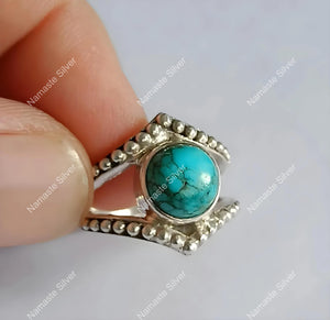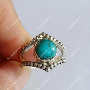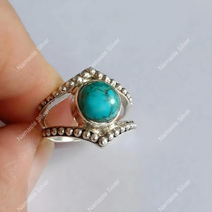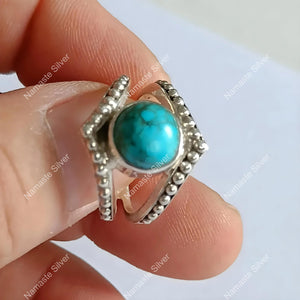 Turquoise Ring, 925 Sterling Silver Promise Ring, Natural Blue Turquoise Round Gemstone Handmade Jewelry, December Birthstone, Gift For Her
