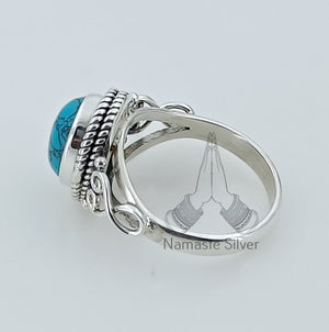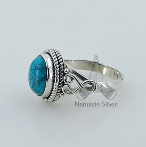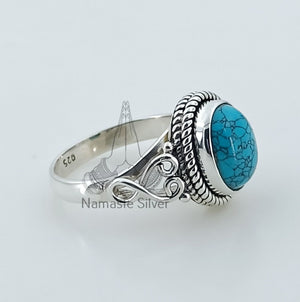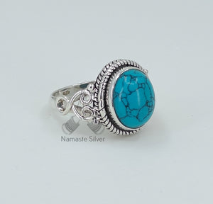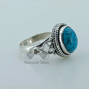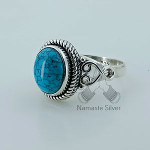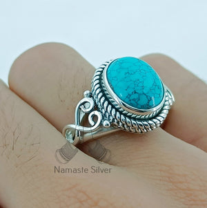 Home Turquoise Sterling Silver Ring, Handmade Boho Statement Gemstone Jewelry Gift for Her Anniversary Birthday Wedding Christmas Valentine's Day